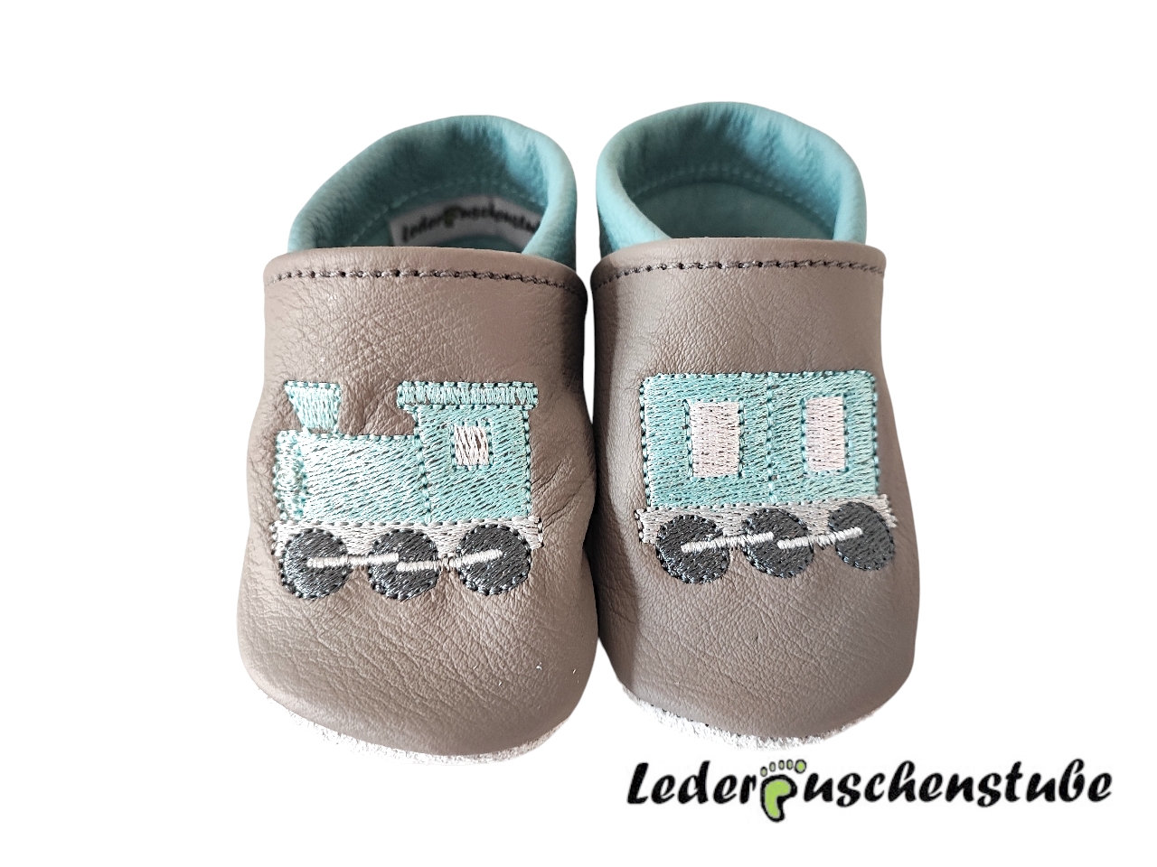 Bei Verschmutzungen der Lederpuschen genügt die Reinigung mit einem weichen, feuchten Tuch. Ist die Sohle mal glatt gelaufen, empfehle ich ein Aufrauen der rauen Ledersohle mit einer Nagelbürste, mit einer Drahtbürste oder mit grobem Schleifpapier. So bleibt die angeraute Oberfläche der Sohle erhalten und Ihr Kind hat immer guten Bodenhalt. Babypflegetücher haben sich dabei auch bestens bewährt. Die Lederpuschen sollten nur im äußersten Notfall in die Handwäsche. Bitte beachten Sie, dass die Hausschuhe beim Waschen etwas Farbe abgeben könnten und deshalb unbedingt separat gewaschen werden sollten. Nach dem Waschen sind die Schuhe nicht mehr so weich wie vorher und meistens etwas kleiner. Das Leder wird deutlich härter.
