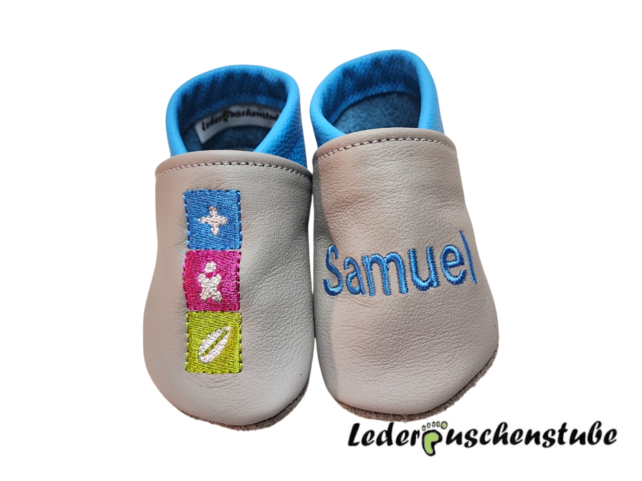 personalisierten Lederpuschen aus weichem Leder passen sich optimal an kleine Kinderfüße an. Sie sind atmungsaktiv, rutschfest und angenehm zu tragen. Ideal für zu Hause, die Krabbelgruppe oder den Kindergarten.